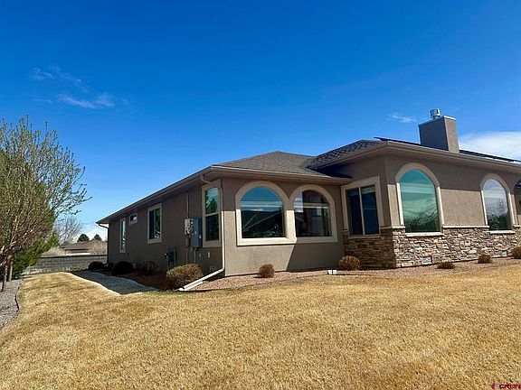 Check out this spacious 2,379 sq. ft. home with 3 bedrooms, office, 2 baths, an attached three-car garage and views of the San Juans. The open kitchen has a bar top—perfect for quick breakfasts or entertaining guests while you cook. The countertops in the home are granite and they are accompanied by hard wood or tile floors and oak cabinets. Off the kitchen you will find a large covered patio where you can enjoy your evenings with the view of the nicely landscaped property. The home also has a solar system in place to offset your power bill! In the living room you will find vaulted ceilings a gas log fireplace and large windows that allow in natural light and show off the views of the San Juans. It’s the perfect spot to kick back and relax. The primary suite with has plenty of closet space with two walk-in closets and a big walk-in tile shower. You are conveniently located near shopping, walking trails, parks, golf and all the other amenities and activities Montrose offers! This home has been hardly lived in and is ready and waiting for you to come and enjoy!