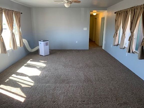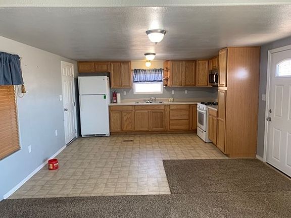 This home offers 3 bedrooms and 2 bathrooms. The master bathroom has a jetted tub. Two porches, one covered porch and another uncovered porch. The Kitchen includes a Refrigerator, stove and microwave. This home is nestled in a 2.5 acre parcel with great views, privacy and two sheds for additional storage. This property is fully fenced. Pets upon approval with additional deposit. It comes with a private well, tenants pays electricity, trash, and propane. Less than 2 miles of dirt road to arrive to this property.