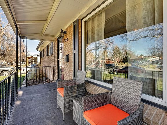 This beautiful brick home features a covered front porch, 4 bedrooms, 2 remodeled baths, a detached garage and attached carport. Nice hardwood floors, carpet and tile. Remodeled kitchen with stainless appliances. Newer windows, interior doors and hardware. Three ceiling fans. Fresh interior paint. Newer furnace and central air 2012. Basement is finished with bedroom, bath and Open family room. Nice size laundry room. Lovely fenced back yard with patio. Close to parks, golf courses, entertainment, Fitzsimmons, Children's Hospital and Anschutz Medical Campus. New park at the end of the street. Nice Community Center.
