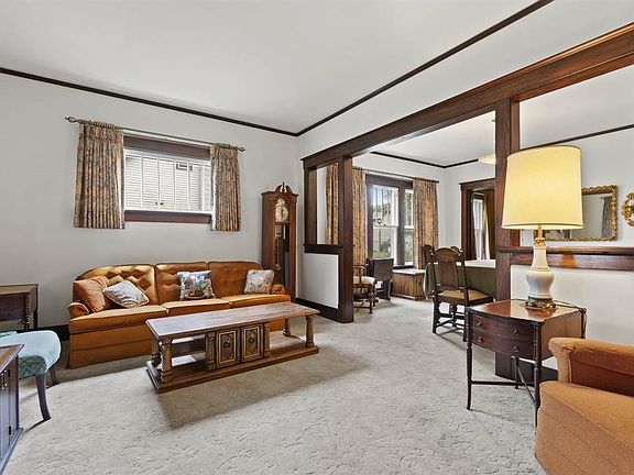 BEAUTIFUL woodwork, SPACIOUS rooms & WELL maintained home can be yours at this affordable price. Enjoy the front porch that greets your guests & enter into a foyer w/built-in bench seat, partially open stair case & French doors to the living room. Colonades that separate LR & formal dining rooms, 1st-floor bedroom w/dual access to UPDATED full bath. KT has beautiful, old fashion cupboard. Upstairs has 3 spacious bedrooms, one with a full bath (just a tub) off of it. EXTRA is a room off of the top of the stairs. FULL basement w/rec rm w/indoor grill, DEEP garage. NO SHOWINGS TILL 7/10/21