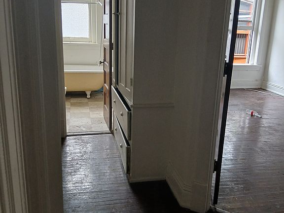 2BR, 1 bath apartment with hardwood and tile flooring. Also includes a stove, fridge, dishwasher, central AC, ceiling fan, and street parking. owner pays water