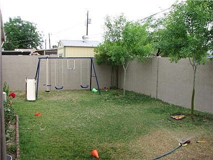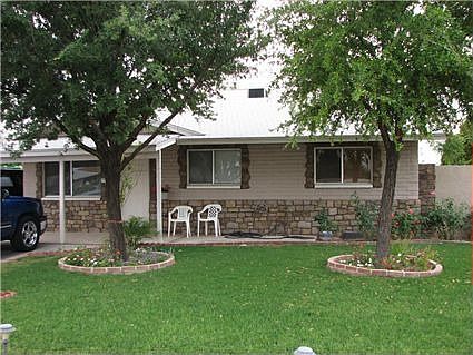 Solid block construction with decorative veneer front. All block fences. Many upgrades recently done: Newer A/C, newer water heater, newer 2-tone interior paint & newer exterior paint, and newer additional covered patios. Other upgrades: Large floor tiles on all traffic/wet areas & wood floor on other areas, granite kitchen counter-tops with under-mount sinks, stainless steel appliances with new dishwasher, raised panel kitchen cabinets,dual-pane windows, 2'' window blinds with valances, water softener system, and ceiling fans thru-out. Additional items including: Extra storage area, fruit trees, and all TV mount brackets stay. Hurry, it's a great value.