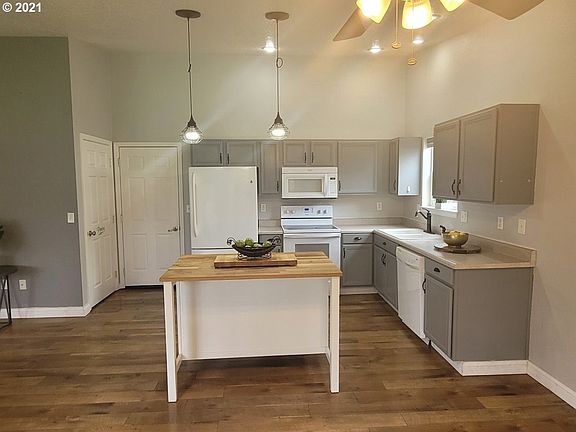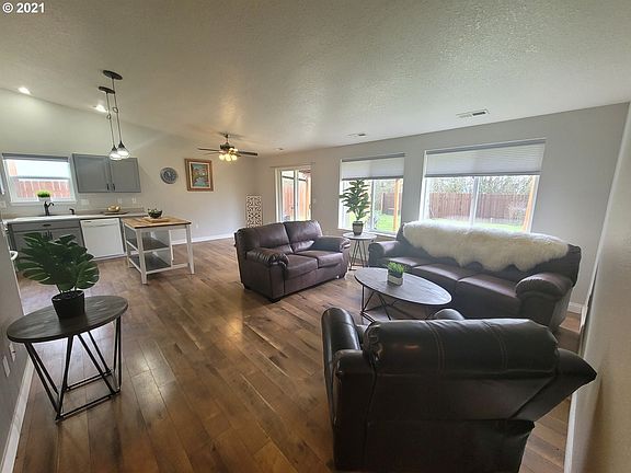 OPEN HOUSE April 6th 1-3pm. Open floor plan, vaulted living area with tons of natural light. New kitchen sink/faucet and island. Master bedroom has on-suite, w/in closet. All new window screens. Timber framed backyard awning provides shade and looks great. Yard is fenced plus separate dog run with covered area. Epoxy on garage floor. RV parking.