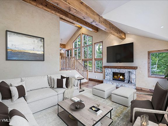 Situated with windows surrounded by aspen trees and abundant with natural light, the open kitchen is large with a walk-in pantry, tons of bar seating, and has a great hang-out area nearby with a television. The dining table currently seats 8 people comfortably, with the bar seating nearby that is great for buffet-style parties, hanging out drinking a glass of wine while talking to the chef, or also works well as a kid's table. Only a short walk from the free Town of Vail bus stop, which provides convenient access to Vail Village and Lionshead without having to drive and park. This property also boasts a one-car garage that can fit a large Suburban, and has additional space to park a car behind your garage. The master suite has large windows and peek-a-boo views of the mountains, a walk-in closet, and a nicely renovated 5-piece bathroom. The master bathroom is spacious and comfortable, with a free-standing tub, a European shower, and dual vanity areas.