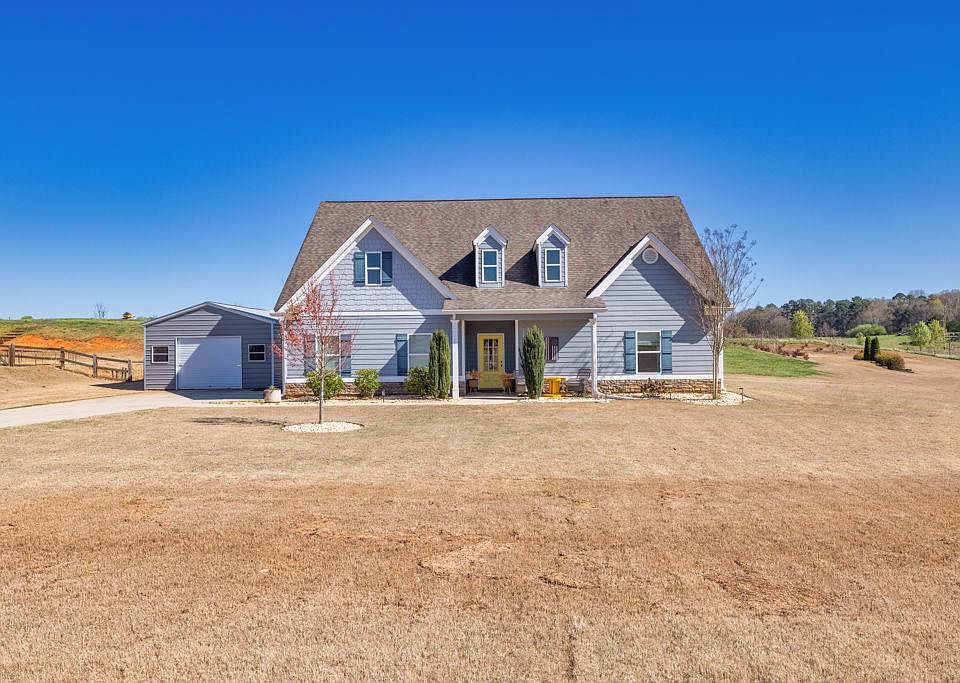 Welcome to your dream home! As you step through the inviting front entrance, you are greeted by an expansive foyer adorned with exquisite lighting fixtures that create an instant ambiance of warmth and sophistication. The open concept layout seamlessly merges the living, dining, and kitchen areas, perfect for entertaining guests or enjoying family gatherings. The living room showcases high ceilings and expansive windows that flood the space with natural light, allowing you to enjoy breathtaking views of the surrounding landscape year-round. The kitchen is a culinary enthusiast's paradise, featuring top-of-the-line appliances that not only enhance functionality but also add a touch of modern luxury. The stylish cabinetry provides ample storage, while the spacious island serves as a perfect gathering spot for casual meals or lively conversations. Moving through the space, you will find well-appointed bedrooms, each offering a unique haven of tranquility. The master suite, a true retreat, boasts generous proportions, a walk-in closet for your wardrobe essentials, and an ensuite bathroom that rivals a five-star spa. The ensuite is equipped with dual sinks, and a separate walk-in shower, creating an oasis for relaxation and rejuvenation. Additional bedrooms provide ample space for family members, guests, or could easily be converted into a home office or hobby room to cater to your personal needs. The outdoor space is equally remarkable, featuring a well-manicured yard that beckons for outdoor living and leisure activities. With over an acre of land, there is ample space for children to play, pets to roam, or for one to simply unwind with a book in hand. The additional garage space (32x24), offers additional storage solutions or parking for your toys. New paint throughout, and a new HVAC make this home as good as new! Whether you are seeking a place to create lasting memories or a serene retreat from the hustle and bustle, this is the home you've been searching for.