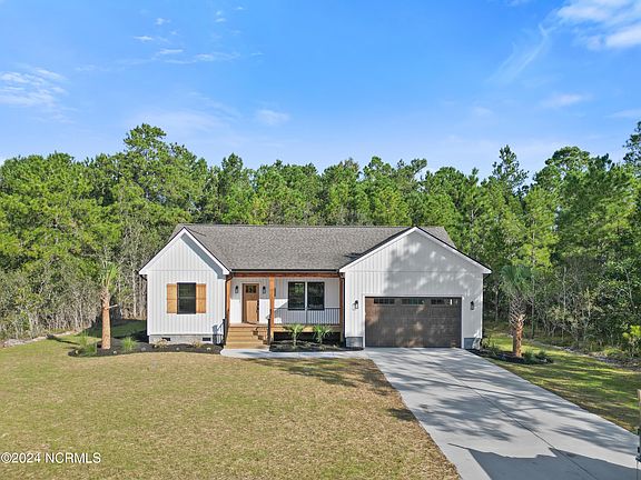 Experience coastal living in this meticulously crafted new construction home in Skylee Place, just minutes from the sandy shores of Holden Beach and Ocean Isle Beach! This stunning 3-bed, 2-bath home boasts 1,271 sq ft of living space that feels much larger due to the layout and open-concept, with vaulted ceilings, designer finishes and stainless steel kitchen appliances. The quality of craftsmanship shines through in every detail, from the quartz countertops and gold accents in the kitchen to the luxurious primary suite featuring an impressive walk-in shower and a spacious walk-in closet with built-in shelving. Nestled on a generous 0.38-acre lot in a community with no active HOA, this home offers both space and privacy.