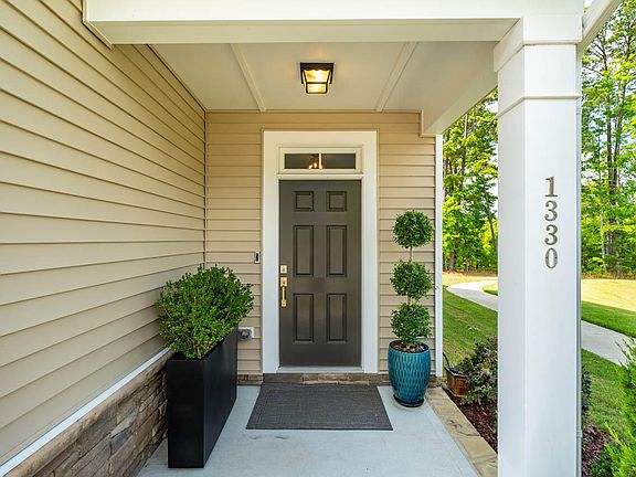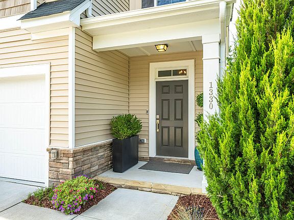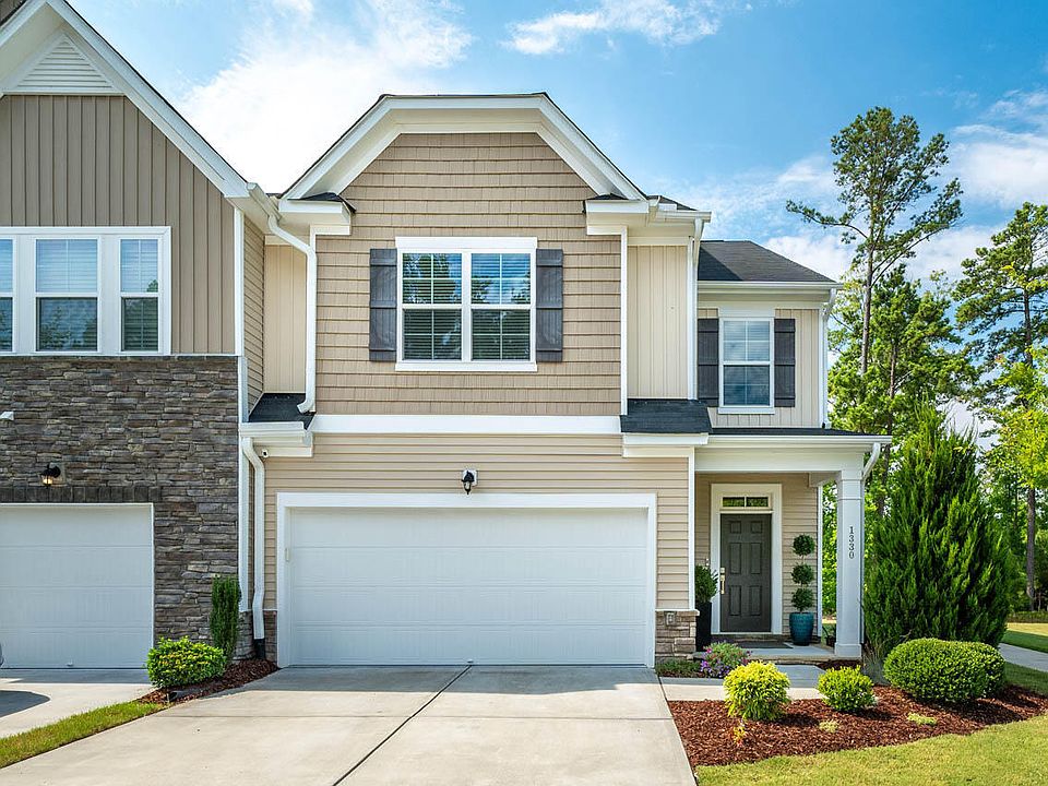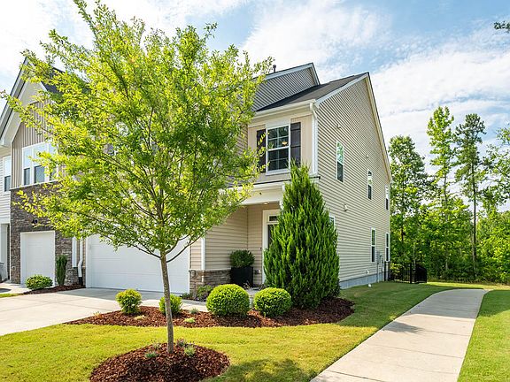 Stunning end unit townhome bathed in natural light and backing to a wooded area. Located minutes from Southpoint Mall and Jordan Lake. This well appointed home features an open concept layout with a large island defining your gourmet kitchen. Ample sized living and dining room spaces make entertaining a breeze. Enjoy Summer nights sipping a drink on your screened porch overlooking your fenced backyard, patio hardscape and raised garden bed. The interior of the home was recently painted with a soothing custom palette. A bright and cheery second floor loft has endless possibilities as a home theater, gym, kids play area or anything else you can imagine for it. The expansive owners suite boasts a tray ceiling and an en suite bathroom with a soaking tub and separate tiled shower. Both upstairs bathrooms feature double vanities with abundant storage. The walk-in closet in the owners suite is quite large and is neatly organized thanks to the custom Closets by Design closet system the owner had installed. The second floor is rounded out by two additional spacious bedrooms, a generous guest bath and dedicated laundry room. The garage interior has been painted and the floors were epoxied. Additional hanging storage shelves give you more floor space for cars. The neighborhood streets are lined by sidewalks which connect to a system of trails that lead to Jordan Lake. The location of this neighborhood is perfectly situated for access to Duke, UNC, RTP, RDU airport and a manageable drive to Raleigh. Truly a one of a kind home.