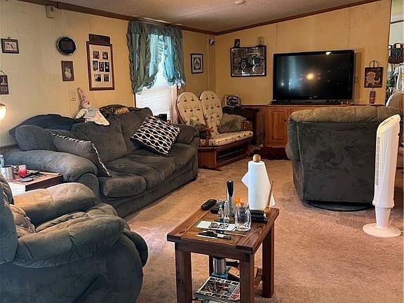 Oh the privacy.... tucked back in your own little private area surrounded by woods on 6.85-acres. You can barely see the house from the road. 4-bedroom, 2-bath manufactured home with full unfinished heated basement w/ an overhead door for heated storage or would be great workshop area. Split floor plan with private master bedroom with large master bath with shower. All 4 bedrooms have walk-in closets. Large laundry room as well. Kitchen was updated in 2021 with maple cabinets and granite counters, center island stays as well as all kitchen appliances. Main floor bath remodeled w/ granite sink and shower. Heating and cooling updated 2012. Roof, gutters and new 36 x 12 covered front porch in 2011. Carpeting new 2022. 32 x 64 garage/pole barn built in 2006 with electric, water hydrant, concrete floor. Double front overhead door and single rear overhead door plus 9 x 64 lean to with gravel. Above-ground pool (2008), deck (2004), retractable awning (2009) 6-person hot tub and storage shed. Trane Furnace and heat pump (2012), hot water heater (2015) Freezer and laundry appliances also convey with the home. Property has a small creek on the east side and has woods surrounding the home. Please do not access the property without a showing appointment.