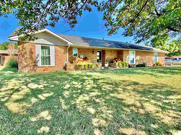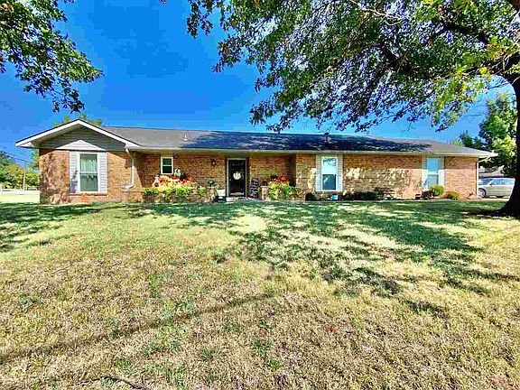 This beautiful brink home sits on the corner of Coolidge & 13th street in Blackwell, Oklahoma and has several mature shade trees. The front entry to the home has raised brick flower beds making it convienent to create great curb appeal. When you enter the home you will be welcomed by a rustic entry with a step down living area complete with a wood burning fireplace. The home hase recently been upgraded to an open floor plan with a complete kitchen upgrade including all new cabinets, grante counter tops,