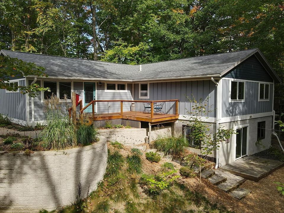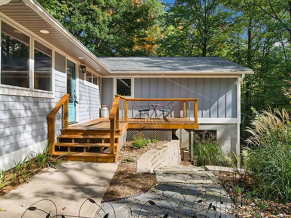 Perfect west side location! Only 2.6 miles to the nearest boat launch and about 12 miles to downtown Traverse City. This home was completely updated in 2020. The current owners added on a large addition making the floor plan and the flow ideal. This ranch with a walkout lower level has a main floor primary en-suite complete with a walk in closet, updated bathroom, and its own private deck. In addition to the primary on the main floor, there are two additional bedrooms, a large open living room with reclaimed white oak floors, a dining room, an updated bathroom with heated floors, a generous mud room with custom built ins, and a convenient laundry just off the two car oversized, insulated garage. The kitchen is truly the heart of the home. An oversized quartz island anchors the kitchen with a 36 inch Wolf range, huge stainless steel vent fan, and enough seating for at least 5 of your favorite people. In addition there are double ovens, a large oversized Kohler farmhouse sink, a stainless steel refrigerator, plenty of pantry space, and hidden microwave oven. Head into the lower level via the gorgeous custom wood stairs and steel handrail system and there you will find a large family room, an exercise room/bonus space, a bedroom with daylight windows, a light bright sliding door that lets the outside in, a half bath, and tons of unfinished storage space for all your stuff. The outdoor space equally matches the indoor features of this house. Complete with 1.16 acres, a pea gravel fire pit tucked under the green canopies of the towering trees, multiple outdoor deck spaces perfect for entertaining, a 10x10 garden shed, and beautiful tiered gardens. This property is a metes and bounds property, therefore you can pretty much do whatever you want including build a pole barn, install a fence, or park your RV. This home is turnkey and ready for its new owners.