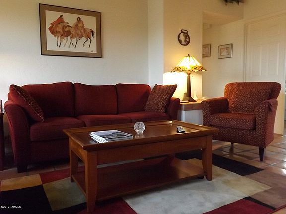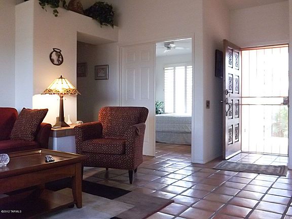 For more information on this property, contact the Listing Agent, Linda Staneart at (520) 918-8121 or LindaS@LongRealty.com. Meticulously maintained, gently used cozy home with Saltillo tile and Plantation shutters throughout. Large, private backyard overlooking arroyo with golf course. Beautiful furnishing included by separate bill of sale. Rental history available, 1 year home warranty included.