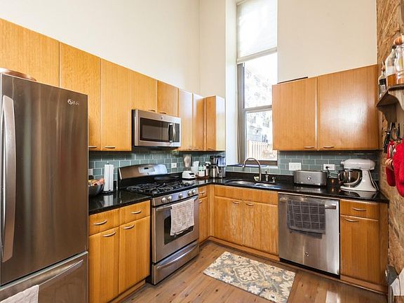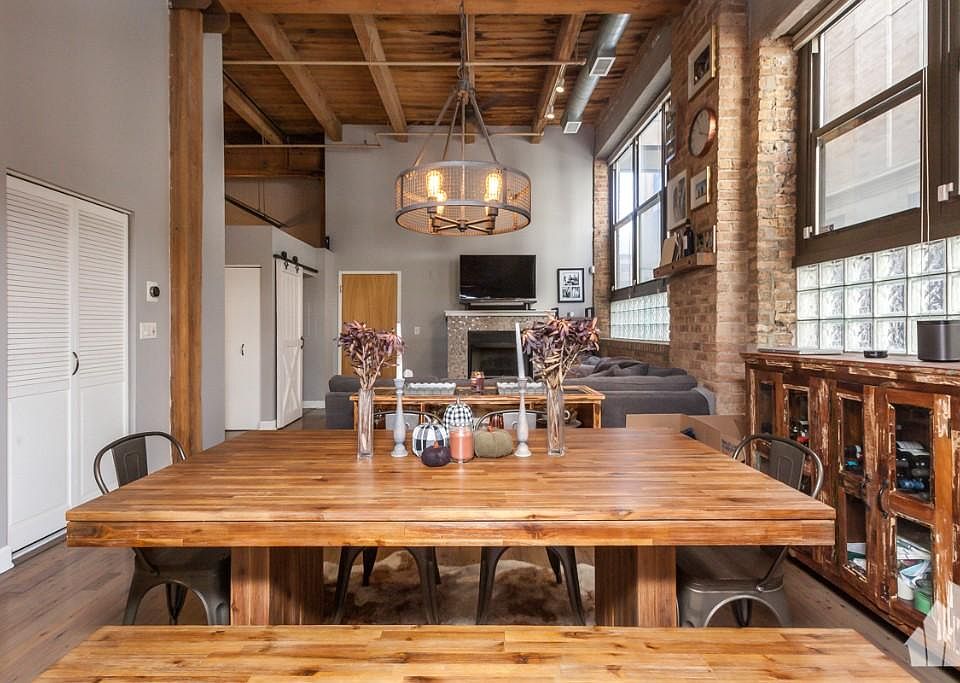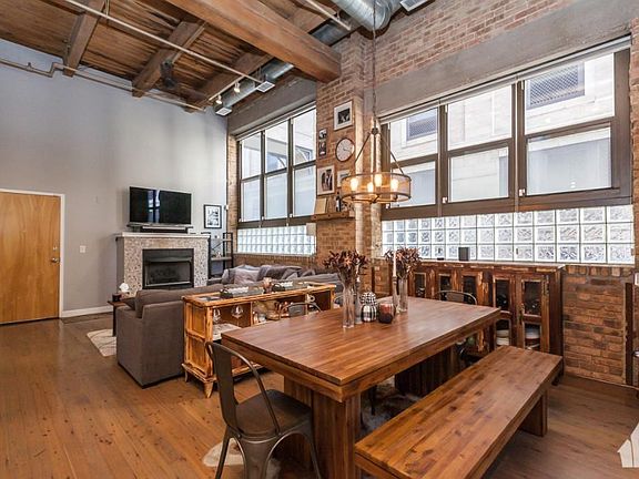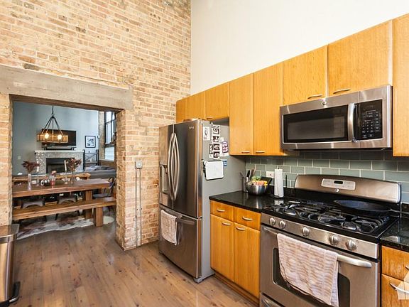 Gorgeous 1300SF 2Bed/1Ba loft w/ private yard & patio overlooking a serene pond. Beautiful and unique features throughout including kitchen w/ original warehouse elevator shaft. Enormous living/dining space - Perfect for entertaining. Corner unit w/ 15' timber ceilings, exposed brick, organized closets, fireplace, hardwood floors, luxury bath w/ marble & double sink. In-unit washer/dryer. 1 garage parking space included, as well as Direct TV. Situated across Skinner Park. Walk to all the restaurants & shops of the vibrant West Loop neighborhood!