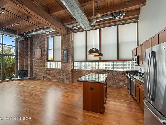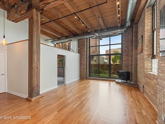 Absolutely stunning true timber & brick Loft in booming West Loop! Very unique space w/ 15 ft soaring ceilings, multi-level living & huge private fully fenced yard! Incredible indoor/outdoor living perfect for dog owners & a gardener's delight. Prime corner unit w/ private entrance, refinished cherry HW floors & tons of natural light thru 2 walls of windows. Great open layout. LR has freestanding gas stove fireplace & tall custom sliding window treatments. Upgraded island kitchen w/ new SS appliances, 1.25" granite counters & 42" cabinets. 2 BRs plus family rm, den/office & storage rm! Renovated marble bath w/ dual vanity & whirlpool tub. Newer front-loader washer/dryer. Relax in Block Y's lush courtyard equipped w/ Koi pond & benches or common sundeck. Coveted Skinner School & park directly across the street. Attached garage pkg space 3E-13 +$30K. Freshly painted & move-in ready!