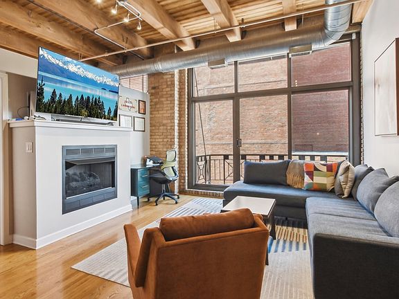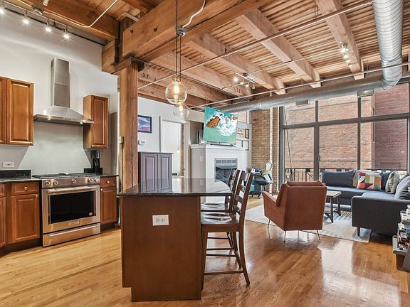 Welcome home to this bright and airy classic 1-bedroom timber loft in the desirable West Loop neighborhood! This space features soaring 12-foot ceilings adorned with exposed brick and timber beams, giving it an authentic urban feel. The open-concept layout includes a spacious living and dining area with large island, ideal for entertaining, along with a cozy fireplace, large West Facing windows and pristine hardwood floors that add to the charm. The bathroom has been renovated with Restoration Hardware fixtures, a stylish vanity and mirror, and new flooring. The aspiring chef will appreciate the generous counter space in the kitchen and KitchenAid stainless steel appliances (2017) and vented hood for a sleek appearance and functionality. Other updates include new flooring in the entryway and contemporary light fixtures throughout. Large bedroom with lots of closet space, and separate in unit laundry room provides additional storage for convenience. Indoor garage parking is included in the price! Enjoy a peaceful stroll in the courtyard viewing the pond, and take advantage of the unbeatable location just steps from Skinner Park, 560 Dog Park (perfect for your furry friends), the award-winning Skinner Elementary School, Michelle Obama Athletic Field, and tennis courts. You are also close to shopping options like Mariano's, Whole Foods, Target, specialty stores, gyms, parks, daycare facilities, transportation, highways, and some of Chicago's best dining options on Madison Street, Randolph Street "Restaurant Row," Soho House, Nobu, Fulton Market, and much more!