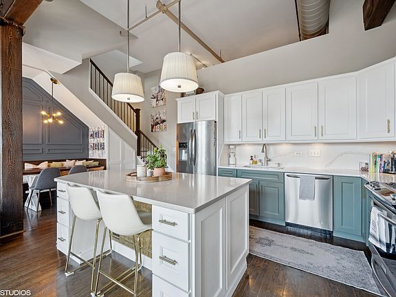 Experience urban luxury at its finest in this stunning penthouse duplex up, nestled in the vibrant heart of the West Loop. This exquisite residence offers a seamless blend of modern elegance and comfort, boasting sleek finishes, spacious living areas, and awe-inspiring city views. Situated across from Skinner Park, enjoy a serene setting that perfectly complements the dynamic city lifestyle. With 16-foot timber ceilings, exposed brick, and expansive skyline exposures, this home exudes character and charm. Step out onto the two fabulous outdoor spaces, accessible from the main living areas, and soak in the panoramic city vistas. Step into a modern aesthetic where newly updated kitchen cabinets, stainless-steel appliances, and fresh hardwood floors enhance the contemporary allure. These features are further complemented by pristine white marble counters, and a dedicated dining/breakfast nook with extra storage, seamlessly blending style and functionality. The second-level family room, measuring 17x15 feet, opens onto an expansive 27-foot terrace, offering a captivating skyline panorama. Retreat to the master suite, featuring a newly redesigned bathroom with a walk-in shower and stunning tile work, as well as a spacious walk-in closet. Enjoy picturesque views of the courtyard gardens, Koi pond, and skyline from every room. This residence comes with the convenience of two garage parking spots included in price. Explore the eclectic dining and entertainment options nearby, including the renowned restaurant row on Randolph, and catch Bulls or Blackhawks games at the United Center. With easy access to the Loop, 90/94, Green/Pink lines, and Skinner Elementary/Whitney Young, this home offers the epitome of West Loop living. Don't miss your chance to own a piece of West Loop paradise - schedule your tour today and elevate your lifestyle!