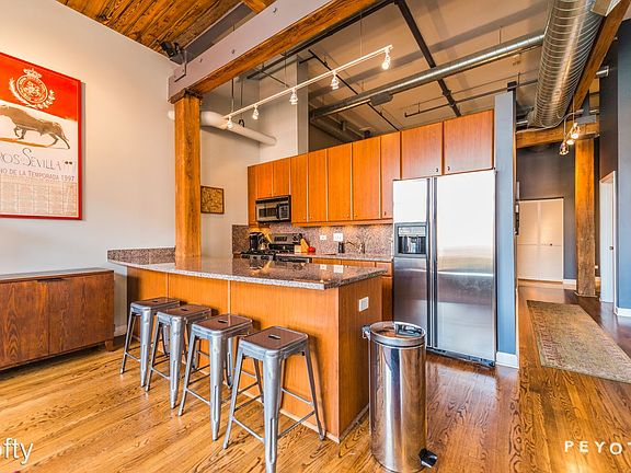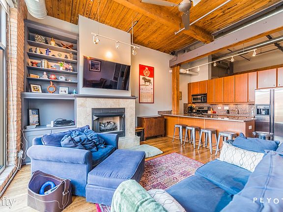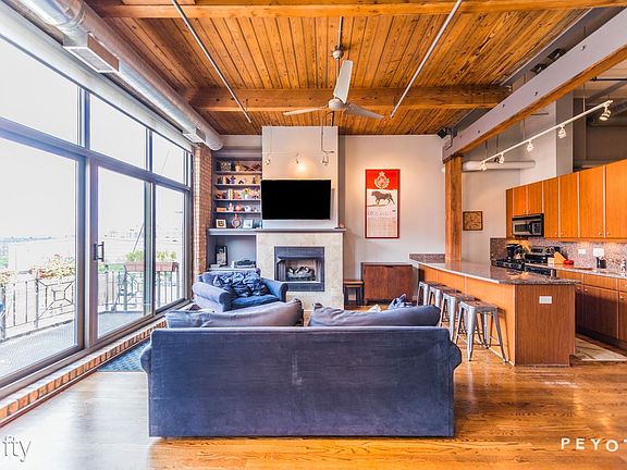LUXURIOUS 2 BED + LOFT, 2.5 BATH TOP FLOOR DUPLEX CONDO IN WEST LOOP - Dont miss this gorgeous 2 bed + loft, 2.5 bath top floor duplex-up condo in the West Loop with timber ceilings and exposed brick! Huge living area with towering floor to ceiling windows that line an entire wall, letting in tons of natural light. Living room features beautiful gas fireplace! Kitchen offers stainless steel appliances, granite countertops and breakfast bar! Stunning hardwood floors and high ceilings throughout the home. Master bedroom includes skylight, reclaimed wood look and plenty of room for king size bed. Both bedrooms offer convenient ensuite bathrooms! Master bath with modern floating vanity and beautiful cabinets for plenty of storage! Large loft space directly outside master suite leads to impressive rooftop deck, great for entertaining! In-unit washer/dryer, solar shades, custom closets and garage parking space are huge pluses. Building offers an elevator and a relaxing courtyard with a pond. Conveniently located right off the Racine Blue Line stop and CTA buses 20 and 126! Across the street from Skinner Park and just steps from Au Cheval, Girl & the Goat, Whole Foods, West Loop Athletic Club and so much more! This one is a must see *Pets negotiable *Water and Heat included *1 garage parking space included *Security deposit equivalent to one months rent *Email communication preferred via leasing@loftyrealestate.com (RLNE2563243)