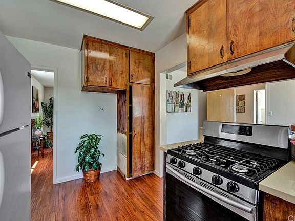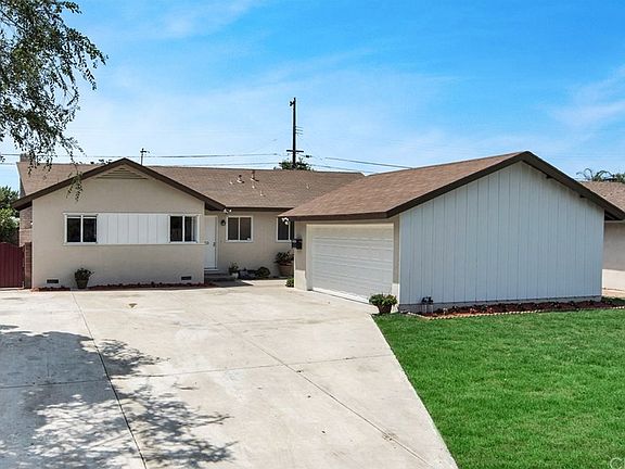Meticulously clean single story, three bedroom and two bath home with brand new laminate flooring throughout, quartz counters in the kitchen, freshly painted exterior, extra wide driveway with plenty of room for RV parking, all on a tree lined street near the shopping hubs of Fullerton. Starts with luscious green grass upfront along with flower lined planters and into an open and spacious living room with lighted ceiling fan and anchored by a brick fireplace with a brick hearth. Open kitchen is highlighted by a stainless steel Samsung five burner Range with stainless steel vented hood, wood cabinetry with an extra deep pantry, stainless steel sinks and newer fixtures, even comes with a Frigidaire refrigerator. Large separate dining room that opens to the kitchen, perfect for the largest of families. Three-quarter bath at entry with newer toilet and tile walled shower. Each bedroom is spacious w/ lighted ceiling fans and extra-large closet space including storage up top. Full bathroom in hallway with shower over tub, newer Faucet and newer toilet. Large backyard thatâs completely private surrounded by block walls on all three sides and highlighted by a covered patio.