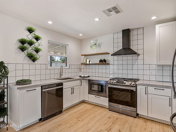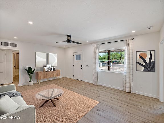 Discover a rare opportunity to own a FULLY REMODELED home in the charming and Historic MELROSE District. This stunning property has been meticulously transformed from top to bottom with high-quality craftsmanship and attention to detail. The home features NEW windows and doors, NEW flooring and cabinetry, all NEW electrical wiring and panel, all NEW plumbing and gas lines, a newer HVAC system and roof, NEW tankless water heater, and a fully re-insulated attic. All renovations were permitted and passed by the City of Phoenix. The exterior boasts convenient switch outlets for easy Christmas light installation, drip irrigation, and hardwired LED landscape lighting in the front yard. The covered back porch, RV gate, and stunning sunset views in the large oversized corner lot make this home perfect for outdoor entertaining and relaxation. The expansive backyard offers endless possibilities for outdoor living and recreation. With its prime location and exceptional amenities, this tasteful home is a rare find. Don't miss out on the opportunity to make it yours. Come visit today and discover the perfect blend of charm, quality, and functionality!