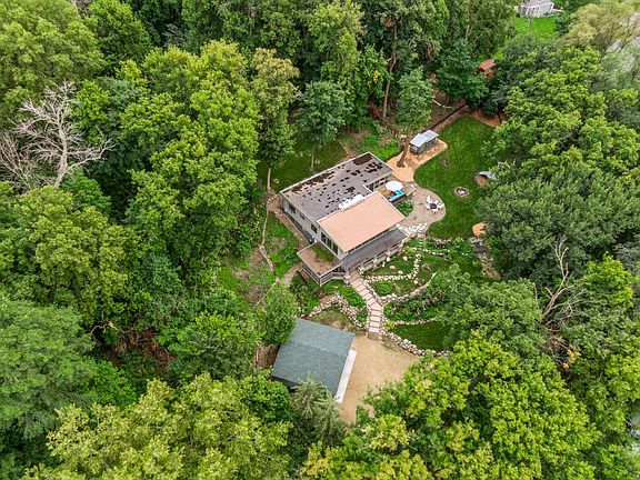 A STORYBOOK SETTING for this truly spectacular ONE-OF-A KIND home situated on a rare 1.45 ACRE lot offering a breathtaking backdrop of beautiful woods and manicured grounds. A remarkable two story integrates Frank Lloyd Wright and mid century modern architecture to encompass the simple elements of design and nature - wood, stone, and walls of glass to create an amazing experience. The open concept design allows every window to bring the beauty of the outdoors in and flood the spaces with natural light. The exceptional living room spans 12 European windows offering sweeping panoramic views of the tree tops, wood & beam vaulted ceiling, a floor to ceiling stone wall with wood burning fireplace and hardwood floors. The gourmet kitchen features granite countertops, breakfast bar/island, in-floor heat, Thermador gas cooktop & SubZero commercial refrigerator, an adjacent informal dining, and walkout to the south facing deck and 3 season porch. Two bedrooms and two full baths complete the upper level. The main level family room includes a walkout to the west facing porch, french doors to a versatile bedroom/office, the primary bedroom with expansive walk-in closet, a 3/4 bath with walk-in shower, laundry room and separate mudroom. You will absolutely fall in love with the professionally landscaped lot offering a mix of gardens, boulders, lush lawn, and mature trees. Easily entertain outdoors on the south deck or 3 season porch, relax around the fire pit, play yard games, let the kids invite friends to their own playhouse, and gather fresh eggs from your chicken coop! A private park in your own backyard! Plus, brand new 2 car garage built 2024, exterior fully painted 2023, furnace 2023, water heater 2019. Ultra convenient location to 35E, parks and trails. AMAZING, FUN, FABULOUS LOT, & 10+ LOCATION!