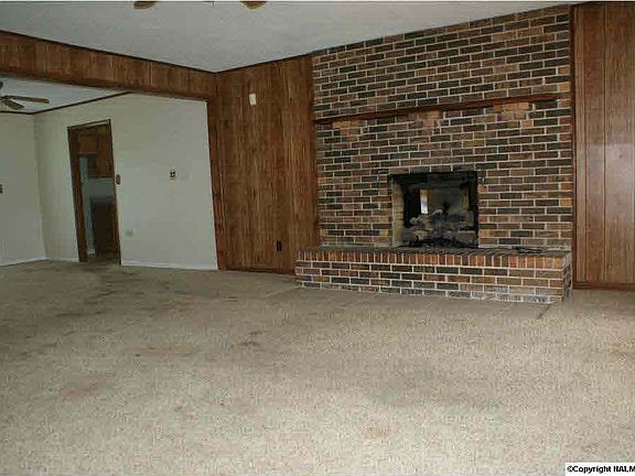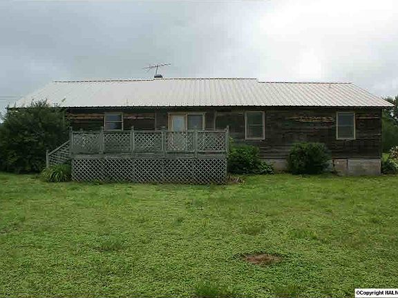 RUSTIC COUNTRY LIVING featuring an open floor plan with masonry fireplace, formal dining room plus eat in kitchen with ample cabinets and a pantry, three spacious bedrooms, two full baths and an attached two car garage! Deep rocking chair front porch and over-sized rear deck overlooking a full one acre lot in a pleasant area convenient to Huntsville and Lake Guntersville!