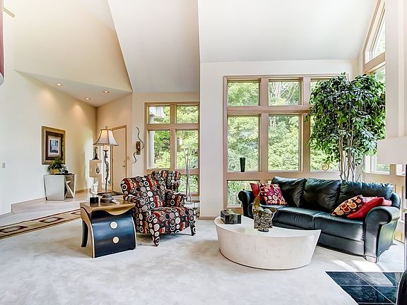 Spectacular lot with heavily wooded natural setting and pond. One of a kind-Rich Hersha Designed home. Many great features. 25' high ceiling at its peak with windows all the way up. Main floor MBR suite with double vanity-walk in shower- walk in closet and soaking Jacuzzi tub. Up bedrooms both have their own full baths. the loft area has a built in desk. Custom raised panel Harlan cabinets with island-Jennair range-gas stove/oven and extended snack counter. Unbelievable LR with full glass walls and gas fireplace. Main floor utility room with utility sink and built in ironing board. Finished walk out basement has four finished areas that has a second gas fireplace, full wet bar/kitchenette, sauna, hot tub exersize area, storage and more. Screened porch has an entrance from MBR and nook. Oversized 3 car garage with 735 sq. ft.. Home has security system and built in speakers. Stamped 20 x 18 patio. new items in 2017: roof (tear off), two central air units and one furnace. If you enjoy watching wildlife this is the place-birds, deer and more! Basement flooring has been removed; it is now concrete-owner was in the process of replacing it and has now decided to let the new buyer finish the flooring, so that is as is. Seller will provide buyer prior survey-uploaded.