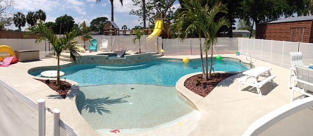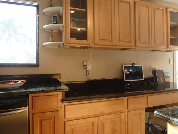 Backyard Paradise retreat in this 4/2 fully remodeled pool/spa home, new carpet, Granite counters, stainless appliances, and oak cabinets. Beautiful dining/family room w/solar tubes for natural light. Master Bedroom with Master Bath totally redone. Pool oasis runs on a low maintenance salt water system featuring a beach-type access/zero entry with umbrella, heated solar panels, color-changing lighting, multiple fountain spouts around the deep end shooting back into the pool and a built in table with umbrella all surrounded by a security pool fence that locks. The large back oasis also includes a marble top gas BBQ grill island with a stereo. On the other side of the pool there is a large custom made play-ground. Also includes a 300 gallon water tank that catches water from the gutters ..