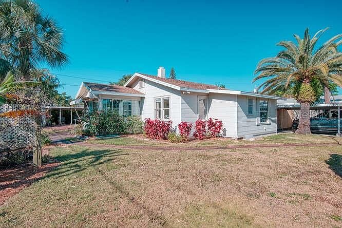 The coolest, coziest Florida bungalow ever. Just 3 blocks from stunning sunsets over the Gulf of Mexico and a gorgeous stretch of powdery beach. Two bedroom, 2.5 bath on a double lot, brimming with Old-Florida charm. Walk through the front door into a light and bright sunroom porch. You’ll want to stop and sit a spell. But don’t. There is even more coolness awaiting inside: refinished hardwood flooring, shiplap, exposed beamed tongue and groove ceilings, double-paned windows, and a large, comfortable living room with vaulted ceilings and a built-in bar. Generous master suite with en suite bath, a hall bath for guests and a separate half bath, too. Cottage kitchen with plenty of cabinets and two closet pantries in addition to a tile backsplash, granite counters, stainless appliances, and a great-for-multitasking washer-dryer nook. There is also a formal dining room with French doors out onto a composite wood deck and a separate covered seating area that can be your very own cabana beach bar. Meandering Pathways meandering through mature, neat and tidy, tropical landscaping, and even a he- or or she-shed with more outdoor toy storage. Fantastic location near the beach and close to great restaurants and boutiques at John’s Pass Village. Coziness and comfort inside; nature and coastal living outside. This feel-good bungalow near the beach is only for those who want a simpler, more relaxed lifestyle. If you crave stress, this isn’t the home for you.