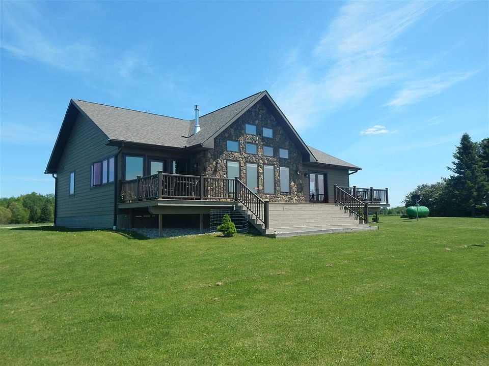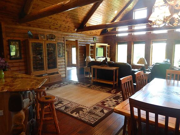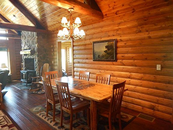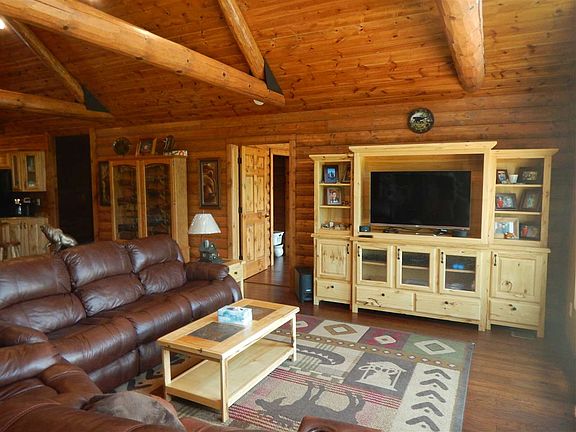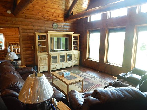 This is a one of a kind newer built home on 40 acres! Quality and attention to detail throughout. 2 car attached garage, 2 car detached insulated 25x23 garage with wood stove and a large pole building with 12ft ceilings. As you walk in through the attached garage, you will find a mud room and laundry area. Then the open living room, dining area and kitchen. Living room features a gas freestanding stove that will heat the whole house and a wall of windows letting in sunlight. The custom kitchen has an eat in island, granite counter tops and plenty of cabinet space. There is a full bath with jet tub, 2nd bedrooms and an office/sitting room that goes out to the large deck. The master is grand. It has a walk in closet, patio door out to back and a bathroom out of a magazine. The master bath has double sinks, jetted tub for 2 and a walk in shower surrounded by a decorative stone exterior. Both bathrooms and mud room have tile flooring with electric in floor heat to keep your feet nice and toasty in the winter. The log interior and cathedral ceilings are a feature all on their own. The open basement has 9ft ceilings, insulated & dry walled and ready to be finished off. There is also an egress window so adding a 3rd bedroom wouldn't be a problem and a sauna! Windows are all triple pane, spray foam insulation, 16" blown in ceiling, LED lighting throughout, engineered flooring, apx 10 acres of pasture with electric fencing, hay fields that a neighbor currently bails, insulated canning room in detach garage, apple & pear trees, 2nd well/setpic/electrical hook ups where a trailer use to be that would be great for someones RV.