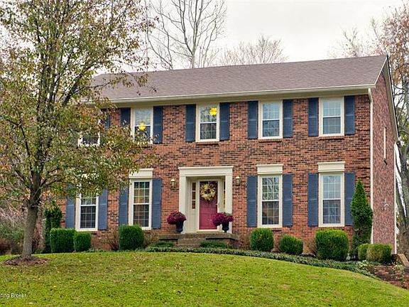 4 bedroom Stately Colonial home in the North Oldham school district, sits on a mature treed lot. Eat-in kitchen has ceramic tile flooring, granite countertops, cherry cabinets and sunken lighting. Family room, office, formal living room, all w hardwood flooring, complete first floor living space. Bookcases surround office area. Master bedroom on second floor, w walk-in closet and bathroom w 2 separate vanities. 3 other bedrooms and full bath on second floor. All bedrooms carpeted this year. Carpeted stairs take you down to a small finished room w access to utility area w laundry hookups. Laundry hookups also available in pantry closet in kitchen.