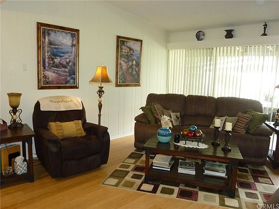 2 bedroom, 1 bath in a beautiful area of Leisure World. Mutual 7 is a sought after location! Newer laminate floors in the living area, 3 skylights, cutdown shower, highboy toilet, newer carpeting in the bedrooms, mirrored closet doors in the main bedroom, beautiful wrap around patio to enjoy the view! There is a nice, well lit storage closet on the patio . The kitchen has white cabinets, a built in microwave, there are two sliding glass doors to the patio, which also has a large skylight. There are no neighbors directly across from the unit, which gives you privacy. This is a really nice spot to enjoy the good life in this lovely 55 and over community. Carport building 182 space 29