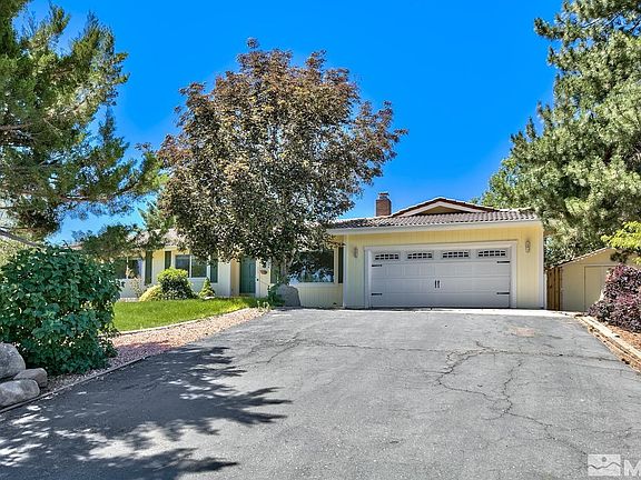 Single Level living opportunity in a very popular southwest Reno neighbohood. This home features three bedrooms and two baths with an open living room with valuted ceilings, hardwood floors and a wood burning fireplace. Galley kitchen has double ovens, gas top stove, plenty of cabinet space and a large commercial refridgerator. Master bedroom includes a spacious bathroom with a large soak tub, double sinks, seperate shower and his and her closets., Located on a sunny half acre lot that has a fully landscaped front and backyard with brick walkways and decorative planters. The backyard is fully fenced offering great mountain views, storage areas and a covered patio. Two car garage with built-in shelving, central AC, large picture windows allowing for ample natural light. This home is move in ready! Being right at the foot of Mt Rose all the fun the Sierras is out your Back door, 15 Minutes to skiing, 35 minutes to Lake Tahoe and Miles and Miles of Hiking, Biking, Snowshoeing Cross Country, Backcountry Skiing trials in between, to explore daily with family, friends and your best Dog buddy.