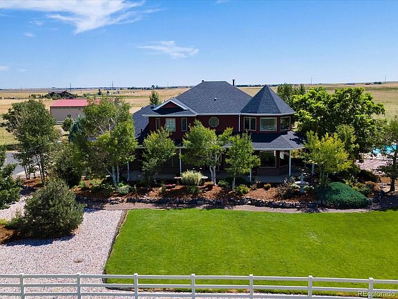 Nestled on 40 acres of scenic beauty, this extraordinary property offers a unique blend of luxurious living and equine amenities, all just across from the renowned Barr Lake State Park.As you approach the estate, a meticulously landscaped entrance welcomes you to a world of comfort and style. With over $75,000 invested in landscaping, the grounds are a true masterpiece, featuring mature trees, vibrant flowers, and well-manicured lawns create a picturesque setting that complements the natural beauty of the surrounding area. The centerpiece of this property is a stunning residence that boasts large windows that frame 180 degree breath taking views of the Colorado landscape, this home is an oasis of tranquility. The interior features the perfect backdrop for both relaxation and entertainment. The property includes a well equipped barn with five stalls and a tack room. Adjacent to the barn, is a round coral providing an ideal space for training. The property also has fenced in riding area for you to enjoy. Beyond the equestrian amenities, this property offers beautifully landscaped outdoor living. A saltwater pool invites you to unwind and cool off on warm Colorado days, surrounded by the beauty of the landscape. The custom patio, complete with a built-in grill, is the perfect place to host gatherings with friends and family. With Barr Lake State Park just across the way, you have easy access to nature trails, bird watching, and a variety of outdoor activities. The location provides a perfect balance between the serenity of rural living and the convenience of nearby amenities, shopping, airport and city access. This equestrian property is more than just a home; it's a lifestyle. Whether you're an avid horse enthusiast, a nature lover, this remarkable estate offers a rare opportunity to experience the best that Colorado living has to offer. Call today to schedule a private showing.