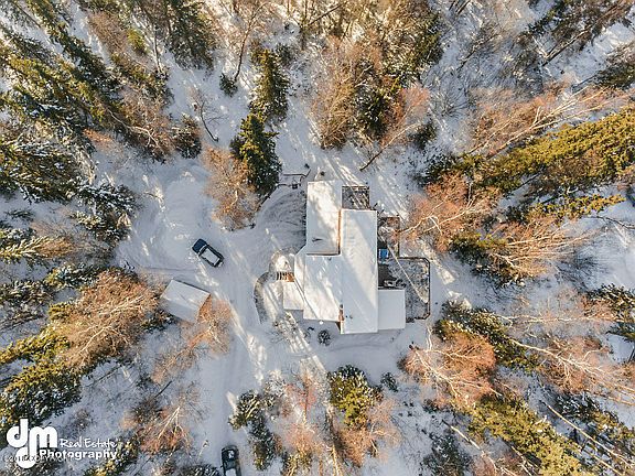 Architecturally striking home in quiet area where homes don't come on the market often. Wooded lot & southern exposure afford peace & quiet, Cook Inlet views, & abundant natural light. Tastefully rustic living - solid surface kitchen tops & updated cabinets & appliances, loft BR w/ great views, wood stoves upstairs & downstairs, master BR sauna, south-facing decks, & awesome greenhouse. A gem!