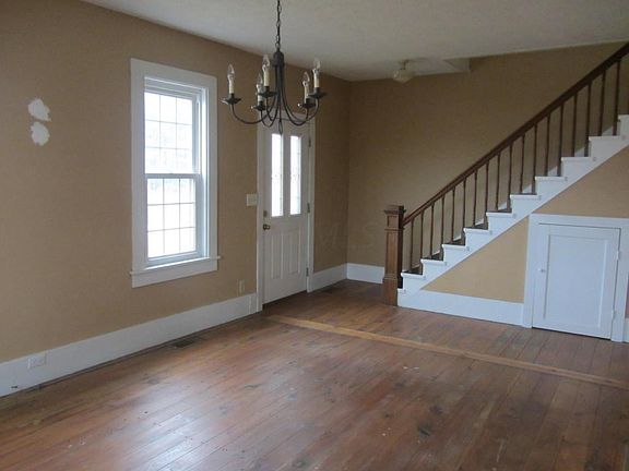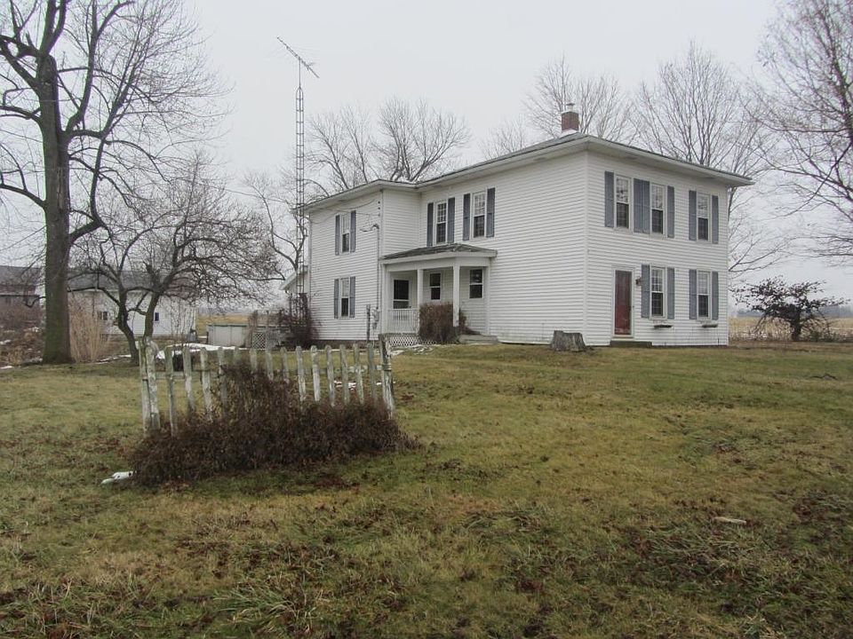 Nice farmhouse located on almost 5 acres, 3 tillable. House features large rooms, hardwood floors, mudroom and vinyl windows. The large kitchen has beautiful cabinets and updated stainless steel appliances. 2 stairways lead upstairs to the bedrooms, walk-in closets and large bath with Jacuzzi. Outside there is a wide wrap around porch, underground dog fence hot tub and above ground pool. A great buy at $124,900.00