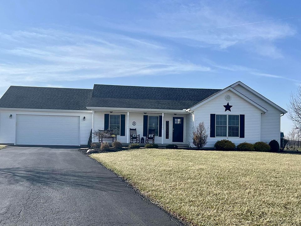 Owner suite is spacious with vaulted ceilings and large closet off bathroom with double vanities. Laundry room is conveniently located off bedrooms and washer and dryer are included. 2 car garage with opener and built in shelving. Convenient location just minutes from Fairfield schools.
