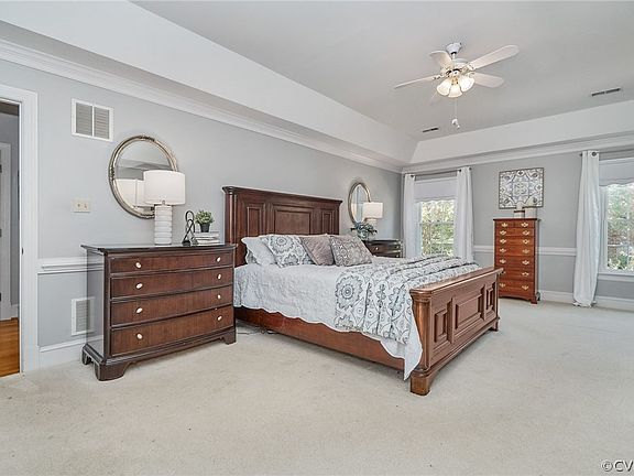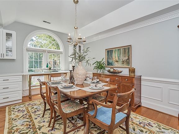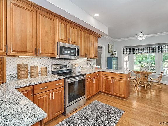 Location, location, location! This beautiful 4 bed, 3 + 2 half baths, single level, brick home sits in a quiet cul-de-sac in the Short Pump area. The wide open entry welcomes you in where you'll find high ceilings, spacious rooms, crown moulding, chair rail, and wood floors throughout the Living, Dining, Kitchen, and office. Kitchen boasts gorgeous solid cherry cabinets, granite counters, SS appliances, and tile backsplash. Separate laundry is roomy and the washer/dryer convey! The primary has a large walk-in closet, sitting area, and tray ceiling. The ensuite will have you wanting to stay and soak away your day in the jetted tub with beautiful arched windows. Bedrooms 2 & 3 have a jack & jill bath, ceiling fans, and large closets for storage. Need a 2nd primary suite? This home has it, with a newly remodeled bath with a zero entry shower & frameless glass door, and a private door to the backyard deck. The yard is pristinely maintained with shade trees, flower beds, and a veggie garden (which grows the BEST tomatoes). You can't beat the location; close to shopping, restaurants, and easy access to I-64 & I-295. Make this beautiful home in a friendly and walkable neighborhood yours!