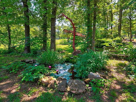 Is it a farm cottage straight out of a fairy tale? Maybe. Come visit for yourself and decide! This two-bedroom, two-bathroom brick and concrete home is truly one-of-a-kind. Sitting on five wooded acres with an additional five acres adjacent, seclusion is what you'll get. Always wanted a place to raise all the farm animals? You got it! I can't guarantee that you'll get away with it, but you're going to want to write the sheep (Bo & Peep) into your offer. Stained concrete floors, the cutest kitchen ever, an incredible floor-to-soaring-ceiling stained glass mural, wood-burning fireplace, covered porch, wrought iron gate, 30x40 electrified shop, brand new AC, safe room/storm shelter, carport, a bit of cross-fencing for the animals, and loafing shed. Whew, I'm out of breath. Just book your exclusive tour, would ya?
