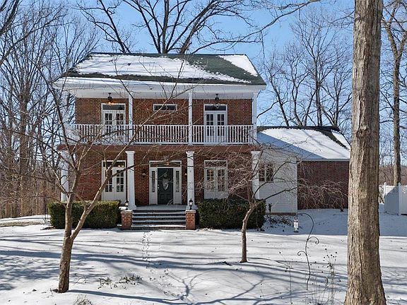 Custom Southern Colonial Gem on 2+ Acres. The Freshly painted porch invites, as you are welcomed into the home with elegant pocket doors connecting to the formal dining rm, sitting across from the home office. Move on through to the living room w/ magnificent fireplace, updated flooring, and serene views of nature. Gourmet chefs kitchen boasts wet bar, ample cabinetry & updated appliances. Main-level laundry/mud room connects to the attached two-car garage. Upstairs, the primary suite offers a whirlpool tub, separate shower, walk-in closet & balcony. Two spacious bedrooms share a Jack & Jill bathroom, each bedroom w/ French doors opening to the upper deck, where you can take in the tranquil views. The walkout basement boasts a large recreation room, family room, full bath, and a 4th bedroom. Freshly graveled drive, heated det. garage w/ workshop and 10ft carport for RV/boat storage. This private retreat offers classic elegance, modern convenience, and breathtaking natural surroundings.