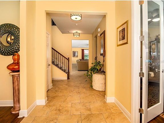 CUSTOM 5,154 SQ FT POOL HOME, this beautiful 5 BED 4.5 BA 2-story luxury home is located in THE ESTATES AT SOUTH COVE a gated community with 47 executive homes and NO CDD. This exquisite home is on a quiet street and features a bright and open floor plan. Enter through the foyer you see an expansive view of your private pool and large covered lanai with a serene water view, perfect for enjoying the sunsets. The dining room is located to one side and the office is on the other. Down the hallway, you pass the stairs to the spacious family room with an open concept living area, perfect for entertaining as the family room flows right into the open gourmet kitchen. Complete with a over sized island, a double oven, granite counter-tops, butler pantry, a large walk-in pantry, plus a separate dining room for luxury entertaining. The elegant master suite feels like a peaceful spa-like retreat with his and her walk-in closets, enclosed shower, with split dual vanities, and a garden jetted tub. A 5th bedroom is located on the first floor with its own en-suite bathroom. A custom heated swimming pool to be enjoyed throughout the year and privacy fenced yard. Lots of extras including a game room and media room. Elegant upgraded finishes from tile, granite, wood, crown molding and tray ceilings. Abundant storage throughout, and each bedroom features spacious walk in closets. This home has it all! Close to schools, shopping, I-75 and a easy drive to MACDILL AFB and Tampa. You deserve this amazing home!