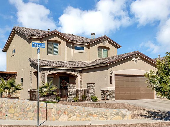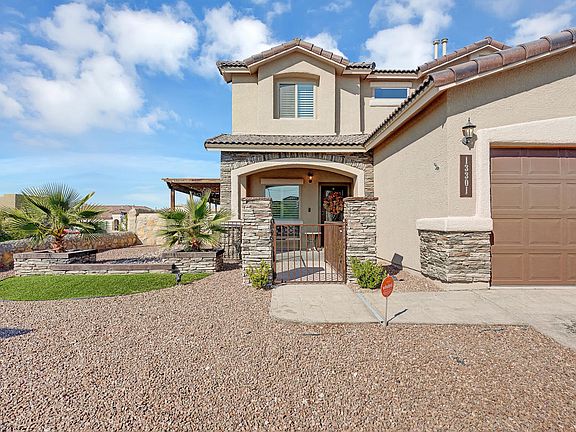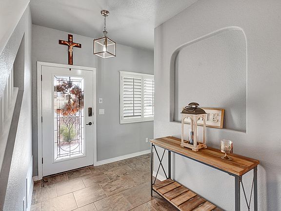 This beautiful corner home is the perfect Christmas gift w/ clean, modern finishes on the inside & an Entertainer's Dream out back! Great curb appeal w/ tile roof, courtyard, covered porch & professional landscaping. Elegant door w/ glass insert welcomes you in. Cozy up to the contemporary fireplace w/ stacked stone from floor-to-ceiling in the super spacious living room. Enjoy cooking in the kitchen w/ modern white cabinets, granite counters, tile backsplash & stainless steel appliances. Serve breakfast at your island & enjoy the abundance of storage & counterspace! There's also a HUGE walk-in pantry & under-stairs closet! There's room for everyone in the 3 bedrooms upstairs. Unwind in your spacious master suite & stunning bathroom w/ dual vanity, tub & tiled standing shower. Walk-in closet has room for all your wardrobe. Host the ultimate BBQ under not 1, but 2 pergolas, while the kids roast marshmallows at your custom fire-pit! Cool stamped concrete, palm trees & turf add to this backyard OASIS