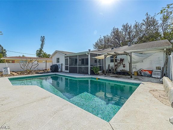 Fort Myers Shores Pool Home for under $300,000 is not an easy find! This stunning single family home boasts 3 bedrooms, 2 bathrooms, and a plethora of desirable features. The in-ground pool is perfect for cooling off on hot summer days or entertaining friends in the private backyard. Inside, you will find an open floorplan that boasts both a living room and den. The kitchen offers white quartz counters, stainless steel appliances, updated cabinets, and an island with the space for an eat-in kitchen. There is tile flooring throughout the main living area with laminate flooring in the bedrooms. The den or family room provides extra space for relaxation or could serve as a large office. This is a gardener's dream. Privacy fencing surrounds the backyard, where you'll find a shed and multiple garden beds ready for new planting. The deck surrounding the open-air pool create a great feel, and the screened patio with paver brick flooring is ideal for enjoying the beautiful Florida weather. Located in a quiet neighborhood with no HOA, this home offers the perfect blend of comfort and convenience. The home is currently being rented. The tenant is moving out on JULY 1st!