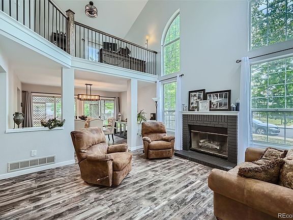 Fabulous move in ready 4 Bed/4 Bath remodeled 2 Story in Coveted Hunter's Glen. Walk in through front porch (NEW Concrete Porch coming in a Week) into a vaulted formal living room with Stone Gas Fireplace and large Southwest facing Windows. The home has undergone a stunning transformation showcasing meticulous updates in 2023 including Luxury Vinyl Plank flooring throughout most of the home, premium wrought iron stair railing to upper level w/ solid wood stairs, new carpeting, air conditioner & Furnace (2019), water heater, remodeled kitchen with extensive storage wall pantry, granite counters, Stainless Steel appliances, Many Newer vinyl windows, ceiling fans, and Interior & Exterior Paint. The main level transitions between a beautiful living room, a charming dining room, kitchen, breakfast nook, powder room and family room with patio door access to the huge landscaped back yard and covered patio from the dining room and family room. The upper level has an open office area overlooking the living room, primary suite with remodeled fancy Primary bath, two more bedrooms and another full bath. Don't forget the finished basement with the 4th conforming bedroom and another full bath , laundry closet, game room with storage closets and theater room with surround sound. Step outside onto the large covered patio and the large 10,272 Sq. Ft. flat lot offers a large safe area for the kids to play with lush shade trees, shrubs, flowers and a large shed for your extra tools. The low cost HOA provides an updated community pool with new playground, tennis courts, basketball courts and a clubhouse near the beautiful Hunter's Glen Lake with a walking trail. The location is close to I-25, E-470 (North to the York St access), the new Denver Premium Outlets, restaurants and excellent schools. NEW ROOF COMING IN JULY!