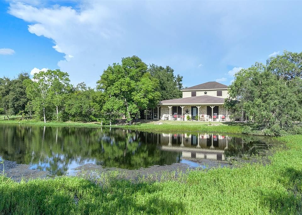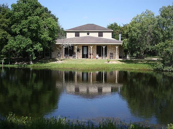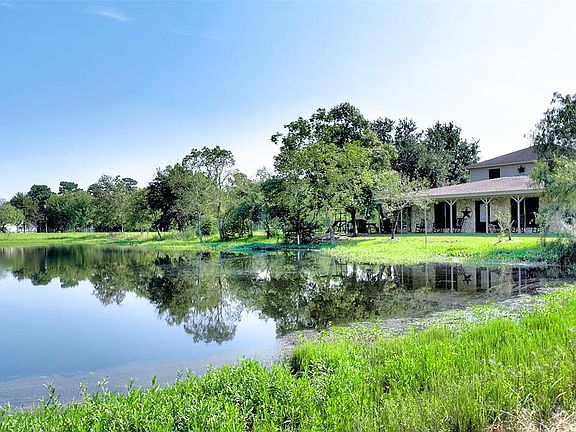 Great opportunity to own your own tranquil house in the country. Only 30 miles to Houston.Enjoy the peace and quiet of what this land has to offer. Driveway gate provides access to the property.Mature pecan trees line the driveway to this stone exterior home with wrap around porch.Sit outside and watch the kids fish in the bass-stocked pond. A large stone fireplace centers the family room and is the heart of the home.Tile floors throughout the down stairs area. Kitchen area includes a large dining space, granite counters, stainless steel appliances and plenty of windows to see the outside. Master Bedroom down stairs with private office.Great sized walk in closet. Doors from the master take you to a screened in porch. Wood stairs take you to the 2nd bedrooms. This area also includes a GMRM space for 2nd TV area or playroom for the kids Property incl a barn for storage. Enjoy the oversized covered patio area for entertaining and with family and friends.There is also a separate apartment.