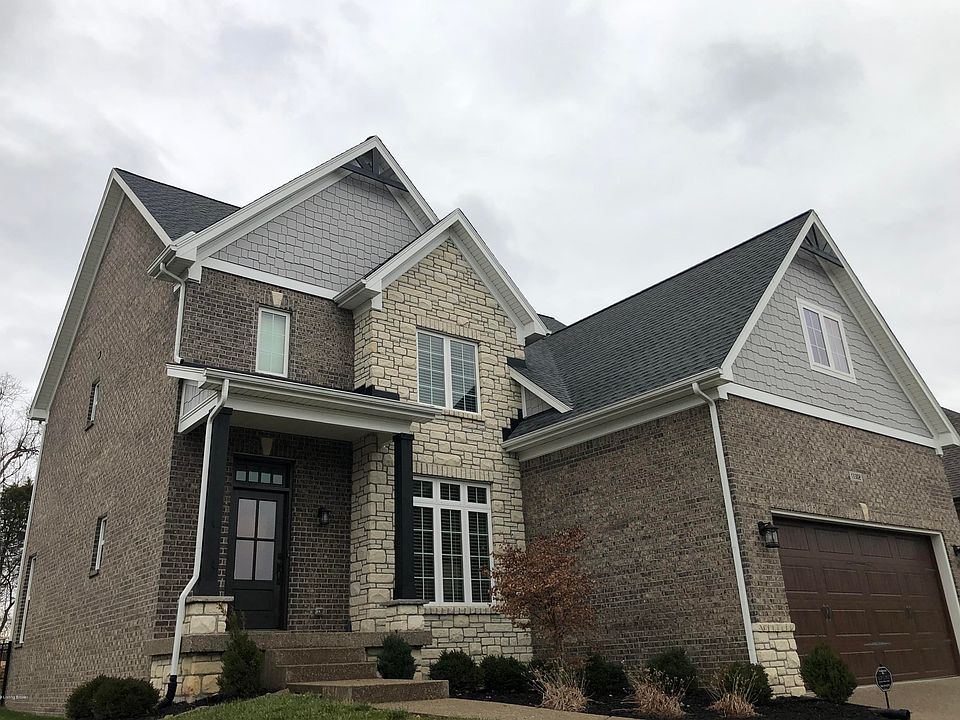 Exceptional Open and Spacious 5 Bedroom Home on Wooded corner lot!! Many upgrades in this family home! Scraped Wood floors throughout! Upgraded Kitchen Cabinets, Granite and Stainless GE Appliance Package!! The Covered Rear Porch overlooks the private, backyard that is surrounded by a black metal fence!! The Master Suite is enormous with a gigantic walk in closet!! The basement has 10' ceilings and a Roughed-in Bathroom, ready to finish!! This house is solidly built by Prestige Builders and is ready for the pickiest inspections!! See Today!!