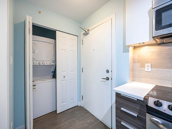 Generous wrap-around balconyLong functional kitchenFull stainless steel appliancesIn-suite laundry
