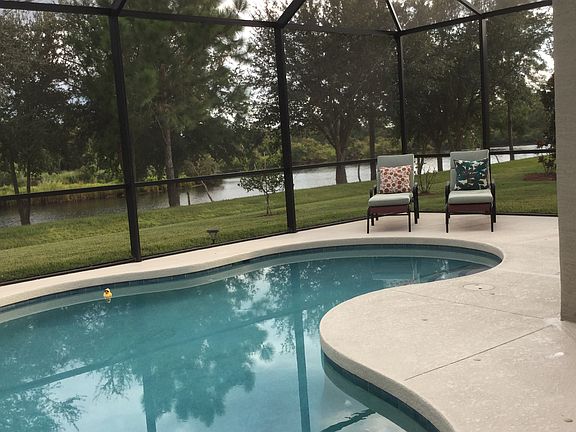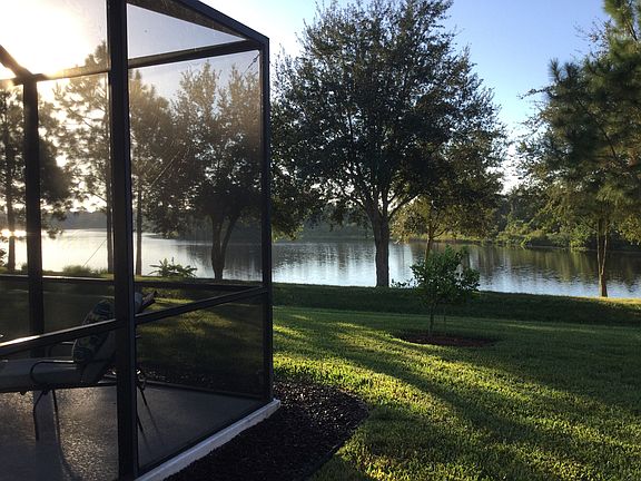 Enjoy kayaking on this hard to find lakefront property connected to the Manatee River, this is not a pond but a lake where you will sometimes see the Manatees. This Medallion (Grand St. Croix VIII) home sits on a quarter acre + lot. It has been meticulously maintained and includes 3 bedrooms (split plan), 2 baths, finished den, dining room, breakfast nook, caged salt water pool, and finished 3 car garage has plenty of storage with access door and built-in removable cabinets. The master bedroom includes two walk-in closets (one is custom designed), a tray ceiling with crown molding, and new wood-like tile. It is beautifully landscaped with palms and mature magnolias, and front courtyard with pavers. Many extras are featured such as granite throughout, upgraded stainless appliances (the microwave is also a convection oven, french door refrigerator has dual ice makers). Additionally, there are gutters, in-home pest tubes, in-ground sprinkler system in front and back yards, hard wood floors in den and dining room, outdoor shower, finished laundry room with oversized washer and dryer, cabinets, and sink, security system, 5 1/2 inch baseboards, and rounded corners. Unique ceiling fans and lighting have been carefully selected. The home also has a surround sound system in the living area and on the lanai. The lanai includes electric and plumbing for a future summer kitchen, wall mounted TV and a Weber Grill. Builder grade windows have been replaced with double pane, argon gas filled, low E tinted vinyl windows. Low HOA and NO CDD. Community has tennis courts, playscape, basketball court, pool, and walking trail. Priced well below new construction with all of this homes features. Why buy new when you can have it all finished for you! Call Chris 860-680-4276