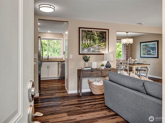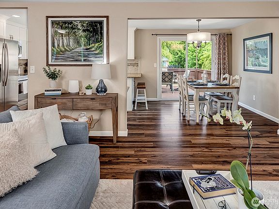 Located at the end of a culdesac and atop a slight hill, this beautiful tri-level literally sits above the rest. Enter through the formal living room with wood fireplace to the remodeled kitchen with granite slab countertops, stainless steel appliances and copious cabinets. Slider off of dining room opens to a large deck overlooking the fully-fenced backyard. 3 bedrooms upstairs, including primary suite with full bathroom. Lower level with spacious rec room, bedroom (perfect for multi-generational living), and laundry room with 1/2 bath. All this + 2-car garage with workbench, solar powered hot water heater, electric forced air heat, new carpet, all appliances & easy access to restaurants, transit & amenities!