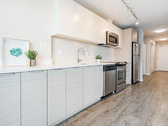 Welcome to WAVE, quality built by award winning RIZE ALLIANCE in the heart of vibrant Surrey City Centre. This warm and popular open concept 1 BED + DEN home with a sliding wall system offers the perfect space for any homeowners' needs. Stunning views of the city and the Fraser River from balcony. Polished quartz countertops with stainless steel appliances. Amenities include dog grooming room, workshop, rooftop for your entertaining needs with stunning views, gym, and on-site building caretaker. Pets and rental allowed.