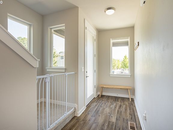 This sleek contemporary design is from Street of Dreams Award Winning Builder, Pahlisch Homes. House is in pristine condition, and features luxury vinyl flooring, gas fireplace, kitchen with quartz island and stainless gas appliances. Open great room allows for maximum natural light. Upstairs master suite has walk-in closet & spa-like bathroom with quartz countertops. Fully fenced corner lot next to green space. Builder warranty to be transferred to new owner.