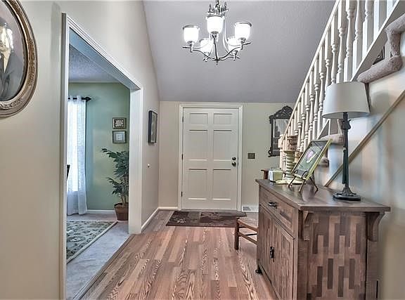 Beautifully maintained and truly turn key. Spacious entry way leads you to the Great room with a lovely brick fireplace with built ins and cathedral ceilings. Painted cabinets, granite counters and stainless steel appliances as well as a walk in pantry are included in the spacious kitchen. The laundry room is also off the kitchen. Need space to entertain? The large dining/living room combo set up for a great gathering spot. The Master suite as well as a 2nd bedroom and full bath are located on the main level. Upstairs you will find 2 huge bedrooms, one with a walk in closet large enough for an office/study area. All bathrooms have been updated. The lower level has a perfect man/woman/kid cave. Plenty of unfinished space for storage and a work shop. Oversized side entry garage. Simply wonderful covered deck that adds another living and entertaining area. It overlooks a lush landscaped backyard. Very serene. Nothing to do but move in - HVAC 1 yr old, HWH 4 yrs old, roof 4 yrs old. Fantastic location with easy access to shopping and highways. Award winning Olathe schools.